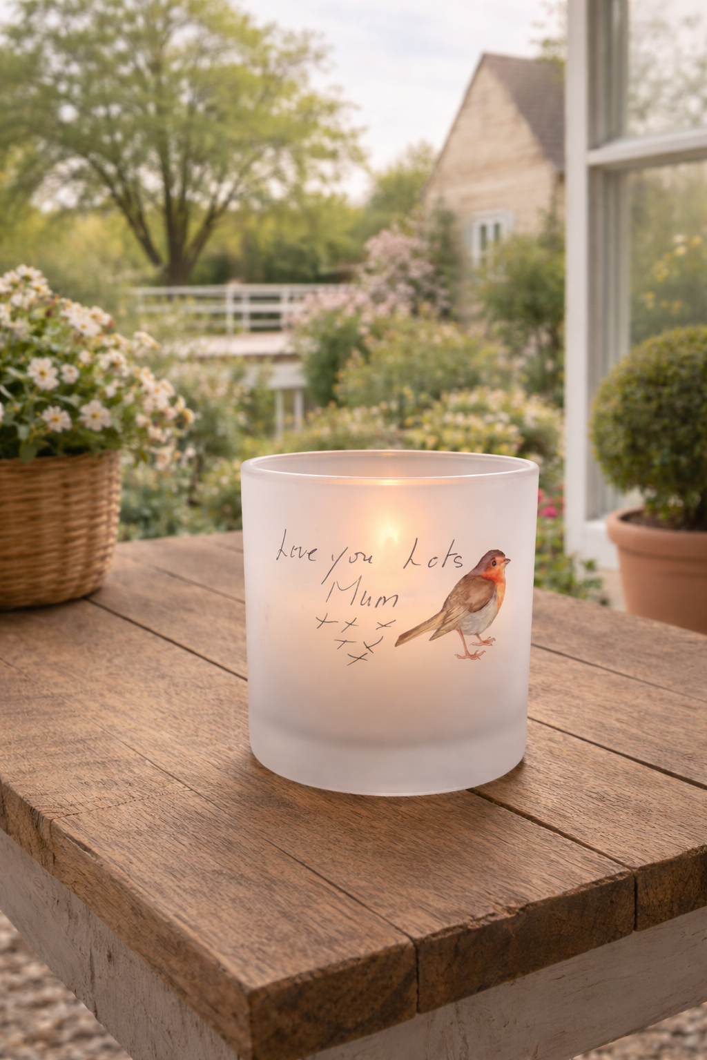Glass Tealight Holder- Upload your own Handwriting- Crow