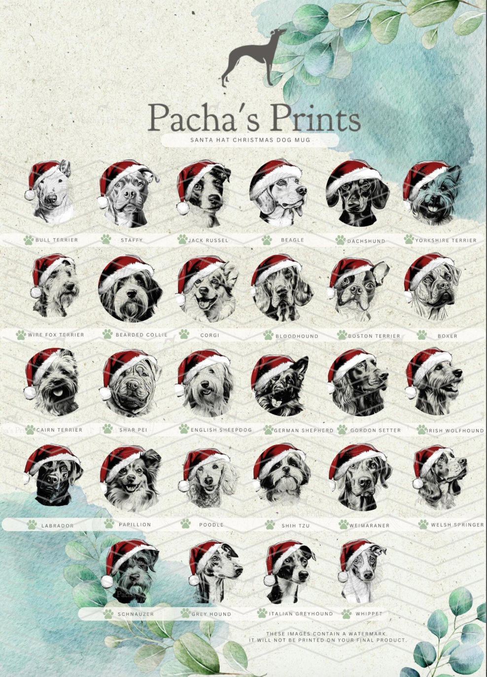 Enjoy the holiday spirit with this Christmas Dog Mug, featuring a delightful dog portrait wearing a Santa hat. The classic white exterior pairs perfectly with a festive red interior and handle, adding warmth to your seasonal drinks. Perfect for cozy moments or gifting to dog lovers this Christmas.