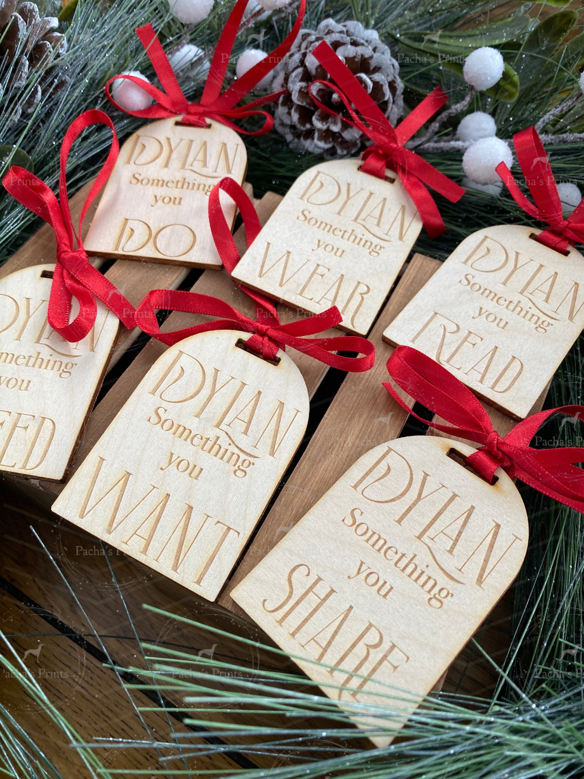 Thoughtfully crafted wooden gift tags (x6) designed to simplify your Christmas giving. Each engraved tag represents a meaningful category—Do, Wear, Read, Share, Want, and Need—helping you create more intentional and budget-friendly presents. Perfect for making gift-giving feel personal and purposeful during the festive season, these tags transform how you approach holiday shopping and wrapping.